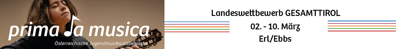 Beim Gesamttiroler Landeswettbewerb prima la musica vom 02. März bis 10. März 2026 in Erl/Ebbs werden sich 890 Kinder und Jugendliche treffen. Die Teilnahme am Landeswettbewerb ist eine musikalisch-künstlerische Standortbestimmung, welche in einem fairen und kollegialen Rahmen stattfinden soll. Fachjuror:innen und Organisator:innenen werden behilflich sein und für ein angenehmes Wettbewerbsklima Sorge tragen.